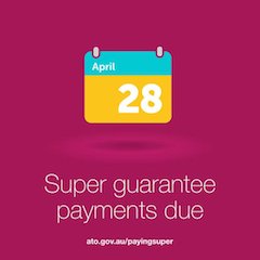 Just a friendly reminder that all January - March Quarter Superannuation Contributions are due for payment no later than 28 April 2016. If you are having trouble processing your employees contributions please do not hesitate to call or contact us via email.